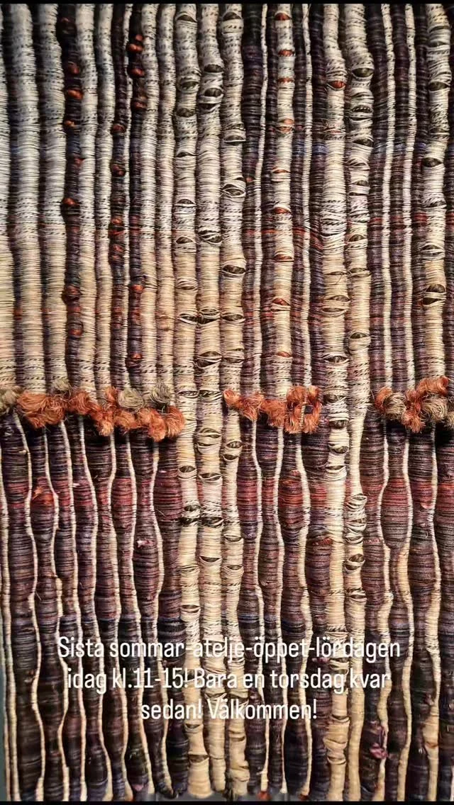 I prefer to work with a free tapestry, weaved in an upright weaving frame - using linen warp with elements of wool and linen - creating narrative, detailed, pictures rich in colour; but also with geometrically rigid, strayed, ripped pictures woven using a loom; with thick, shiny linen warp and elements of thick, sisal rope, providing a rough, knotty, abrasive structure.